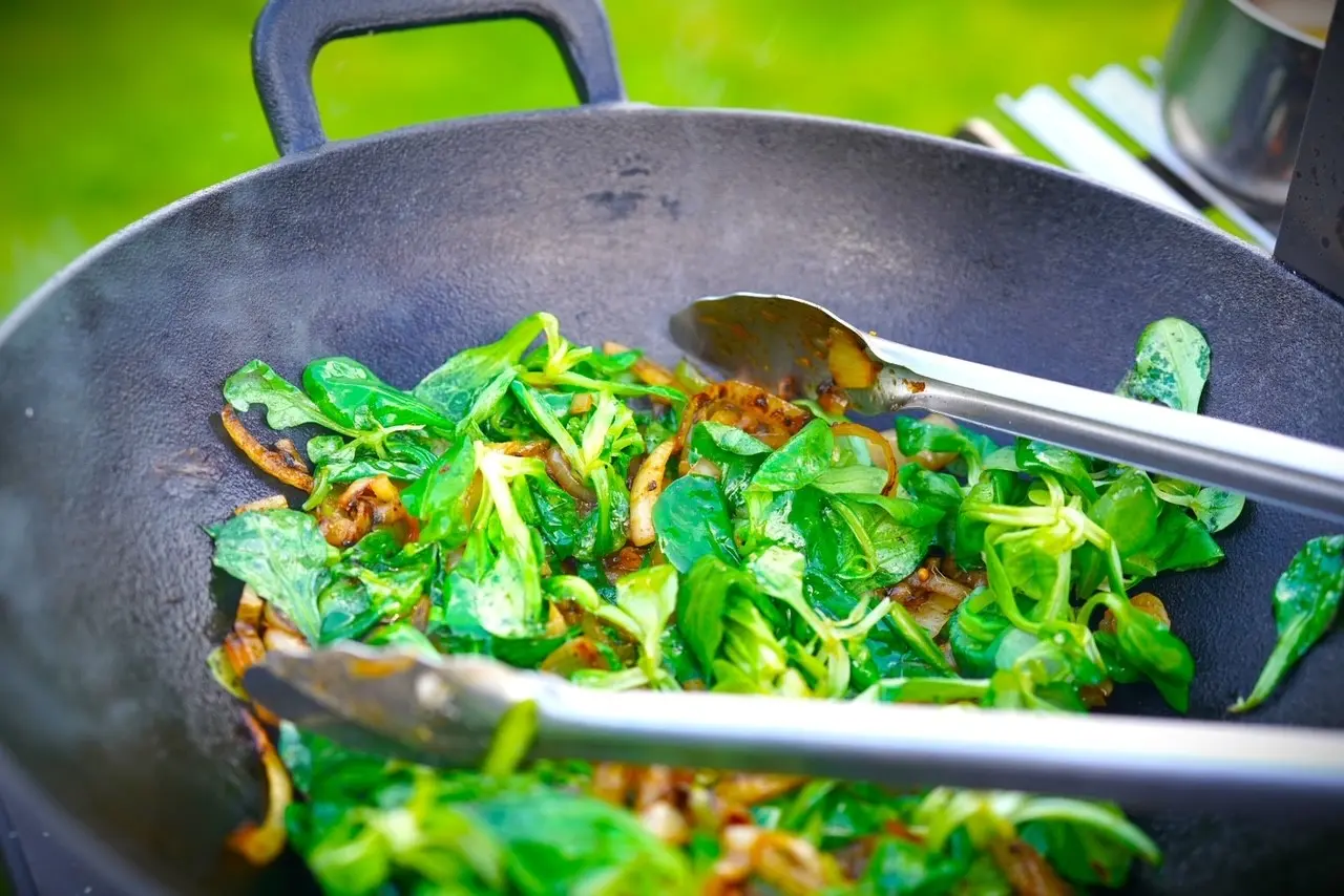 Just before serving, add the lamb's lettuce to the warm onions in the pan and toss briefly.