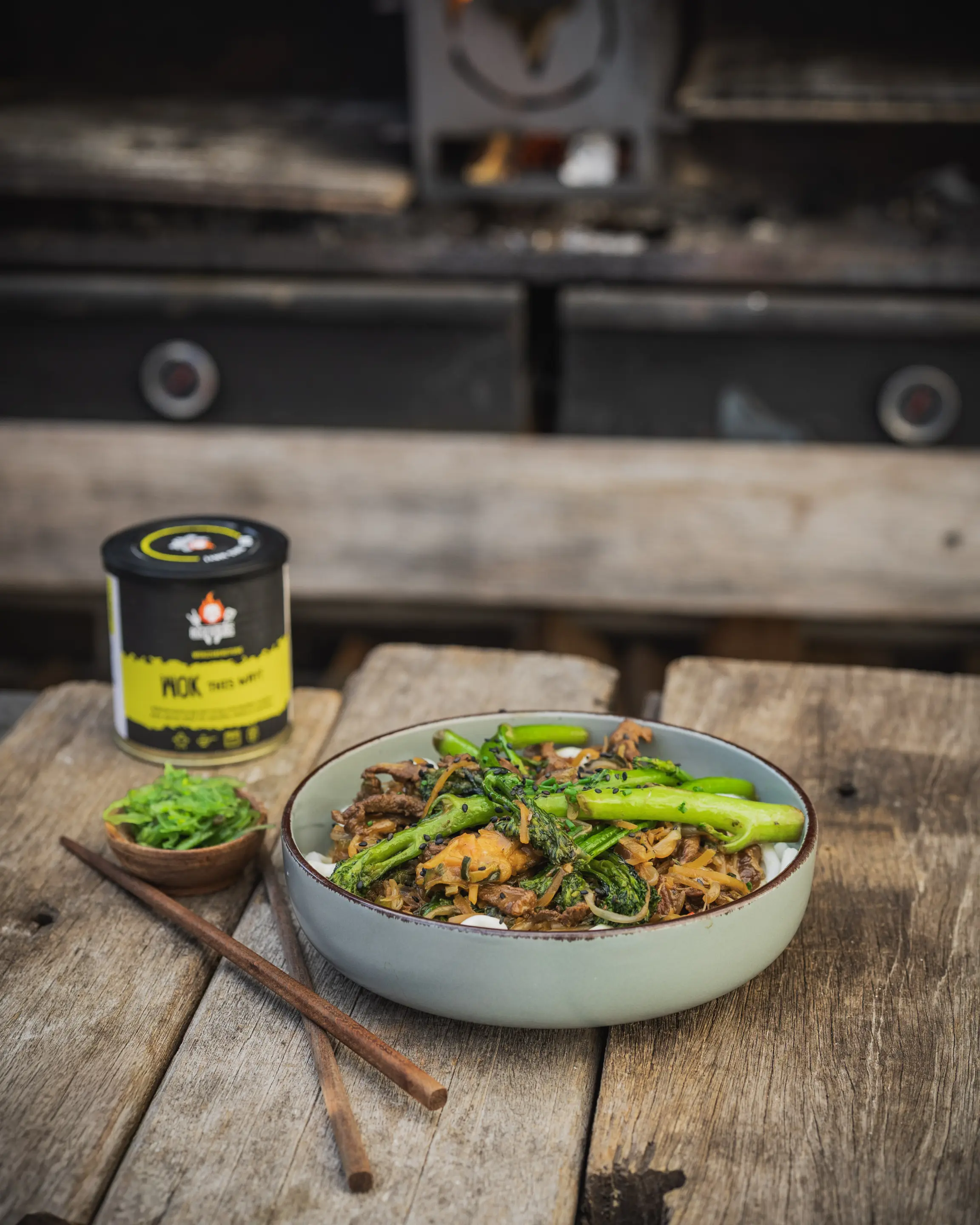 Den Wok sehr heiß werden lassen. Das Fleisch samt Marinade ca. 90 Sekunden scharf anbraten, bis es karamellisiert. Aus dem Wok nehmen und zur Seite stellen.