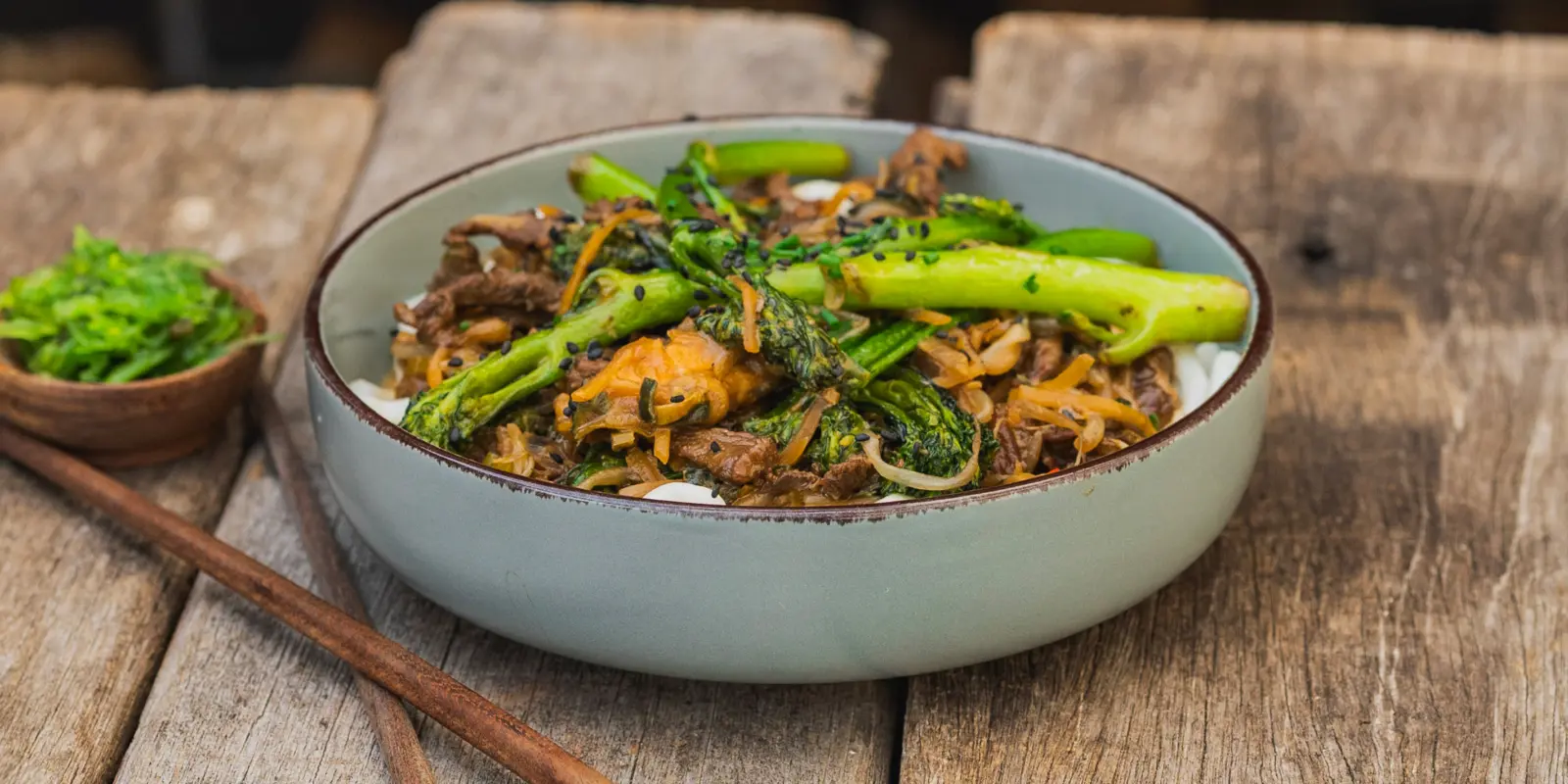 Den Bimi im Wok mit einem Spritzer Wasser ca. 3 Minuten bissfest garen.