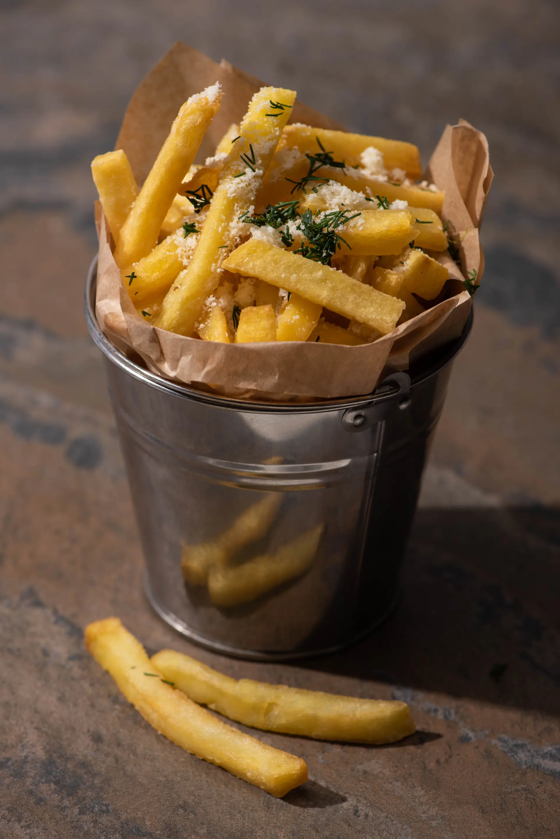 Für gleichmäßige Knusprigkeit Kartoffelstifte wirklich trocken werden lassen und das Trüffel-Puder direkt nach dem Garen aufstreuen – so haftet es perfekt.