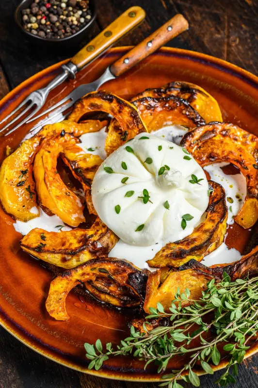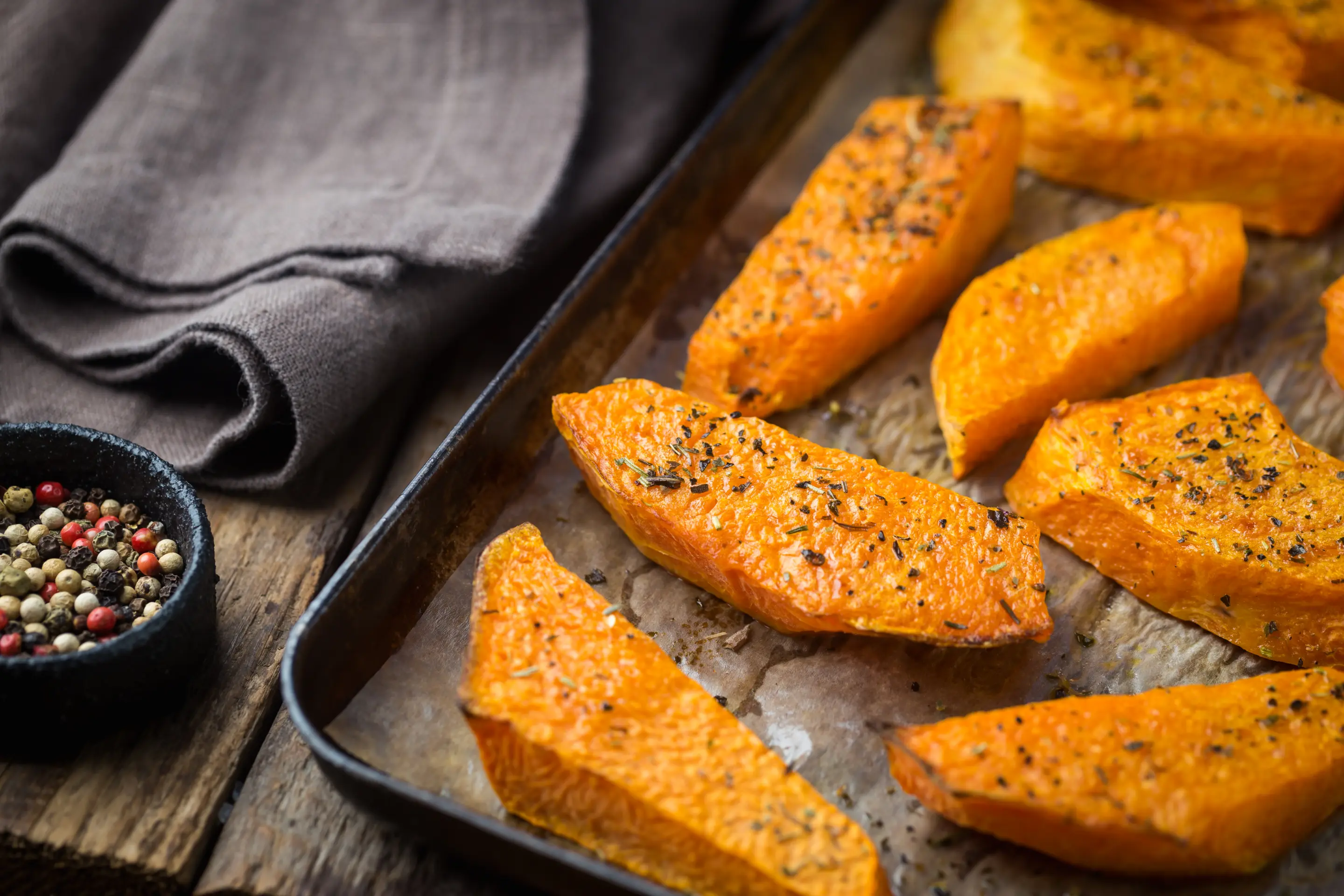 Gleich wie oben – Kürbis in Spalten oder Würfel schneiden (nicht zu groß), mit Öl & „Truffle Shuffle“ marinieren.